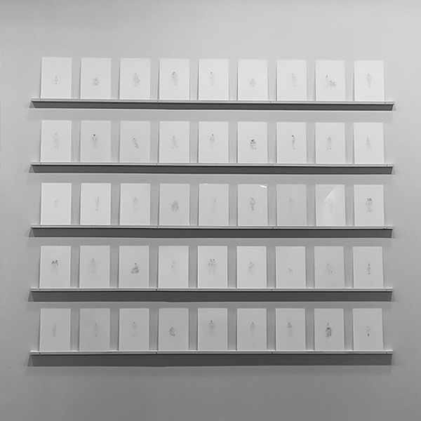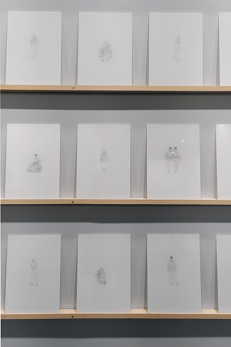 En concreto, para Figurantes se han seleccionado 49 figuras humanas y un perro como habitantes de la urbe que se (re)presenta en este proyecto.